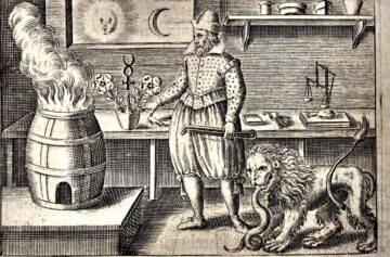 Da questo quadro non certo confortante ci spostiamo sull’altro co-termine al quale abbiamo fatto riferimento, alchìmia. Un vocabolo che viene da latino medioevale ma che ha le sue radici nella lingua araba dove lo si ritrova con il significato di arte della pietra filosofale. Una derivazione però solo intermedia che attraverso il siriaco kīmiyā, si rifà al tardo greco χυμεία, ovvero kumeia. Storicamente si fa riferimento ad essa come arte, nata nell’ambiente ellenistico dell’Egitto nel I sec. d. C., che si proponeva la manipolazione e trasformazione dei metalli, e in particolare la loro possibile trasmutazione in oro o in rimedi per il prolungamento della vita. Sempre il dizionario ci dice che dall’alchimia, coltivata durante tutto il medioevo e l’inizio dell’età moderna, fino al sec. 17°, ha avuto gradualmente sviluppo la chimica. Sin qui il significato diciamo positivo.