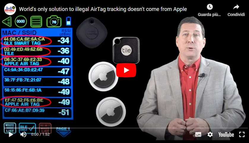 Anche Apple con le nuove versione del Sistema Operativo, vi avvisa che avete un AirTag che si muove assieme a voi, quindi occhio!